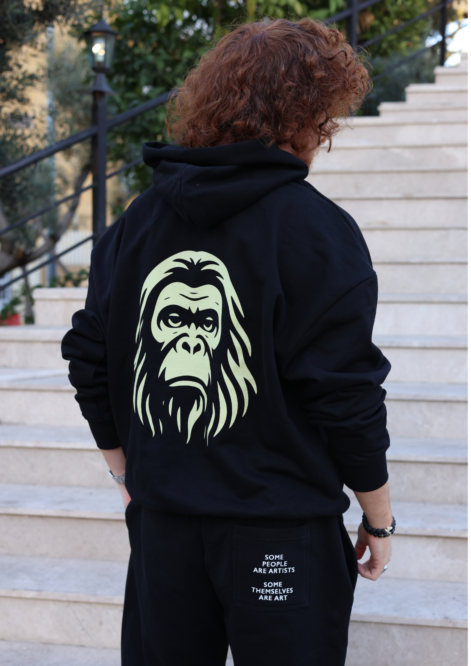 Inspired by the story of the orangutan, a creature taken from its home, forced to perform for the public, and pushed to the edge of extinction . APE represents every person who came from the street, survived the struggle, and evolved into something rare.